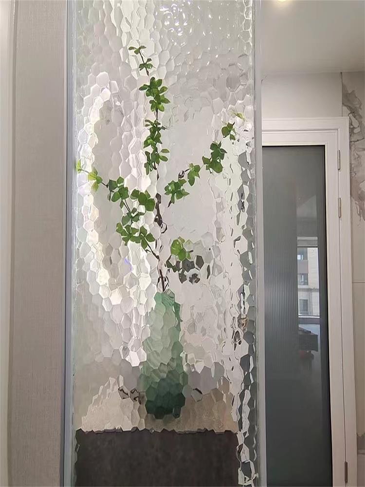 超白钢化水波纹石头纹玻璃隔断油画既视感1
