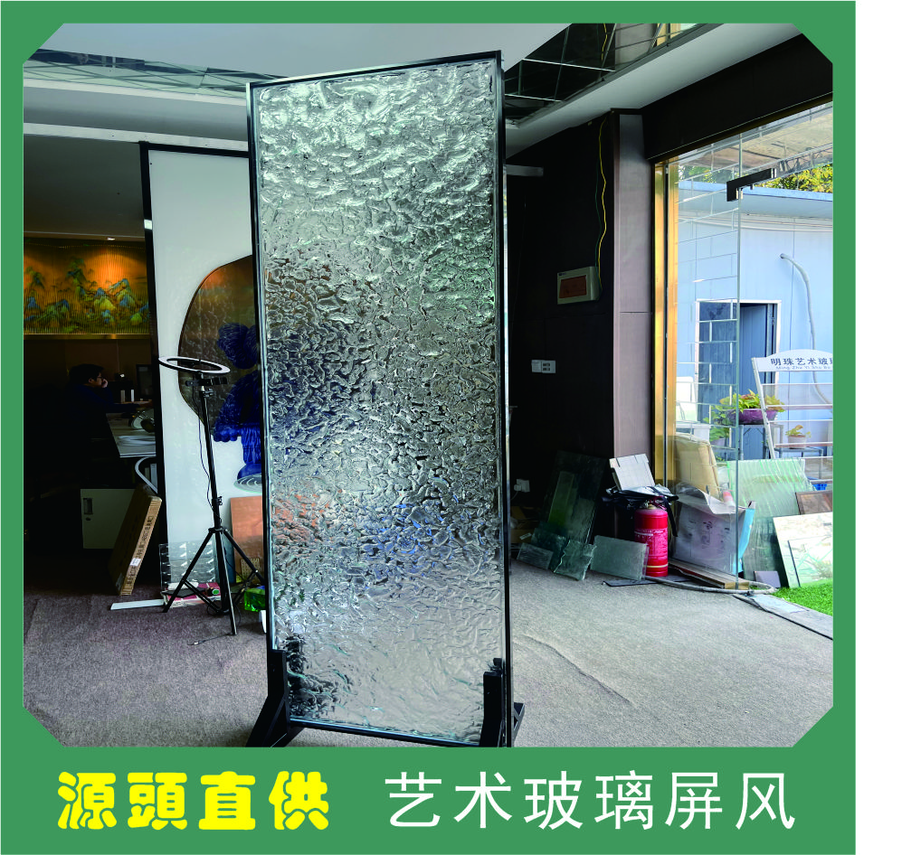超白钢化水波纹石头纹玻璃隔断油画既视感2